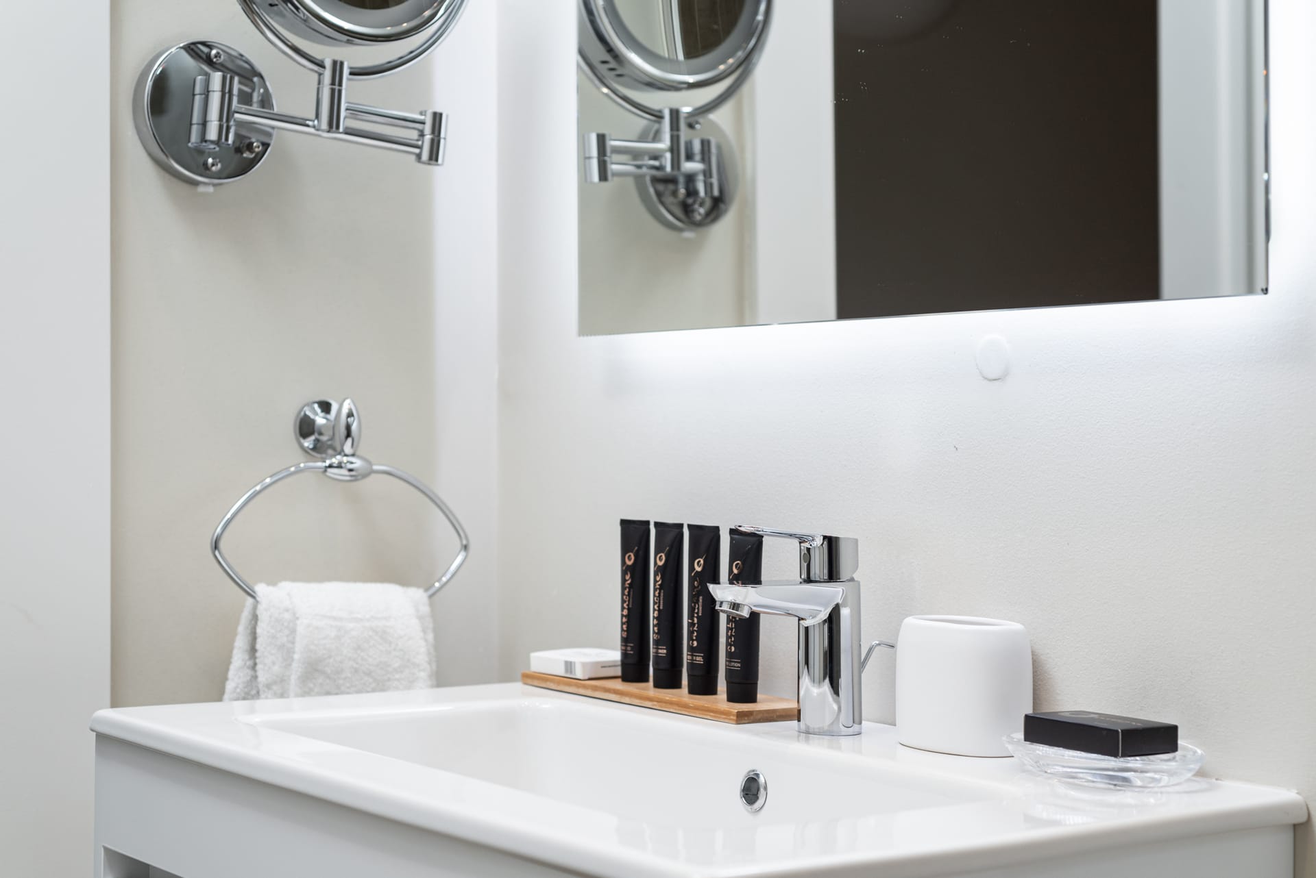 Max: Room facilities:Baby cot (on request), Bath Amenities, Bathroom with Shower, Bed linen, pillows and blankets, Cable-Satellite TV, Cleaning Service (every 3 rd day), Coffee / Tea Facilities, Cutlery, Crockery, glassware, Electronic Locks, Fire Extinguisher, First Aid Kit, Hairdryer, Individually controlled AC, Iron & ironing board, Kettle, Microwave oven, Mini Refrigerator, Nespresso Coffee Maker, No pets allowed, Non-smoking rooms available, Queen-sized bed (1,60×2,00m) with premium mattress, Safe, Sitting Area, Slippers, Smart TV, subscribed to universal channels, access to streaming services, Soundproof Windows, Wardrobe with full-length mirror, Wi-Fi Internet Access (free of charge), Writing Desk