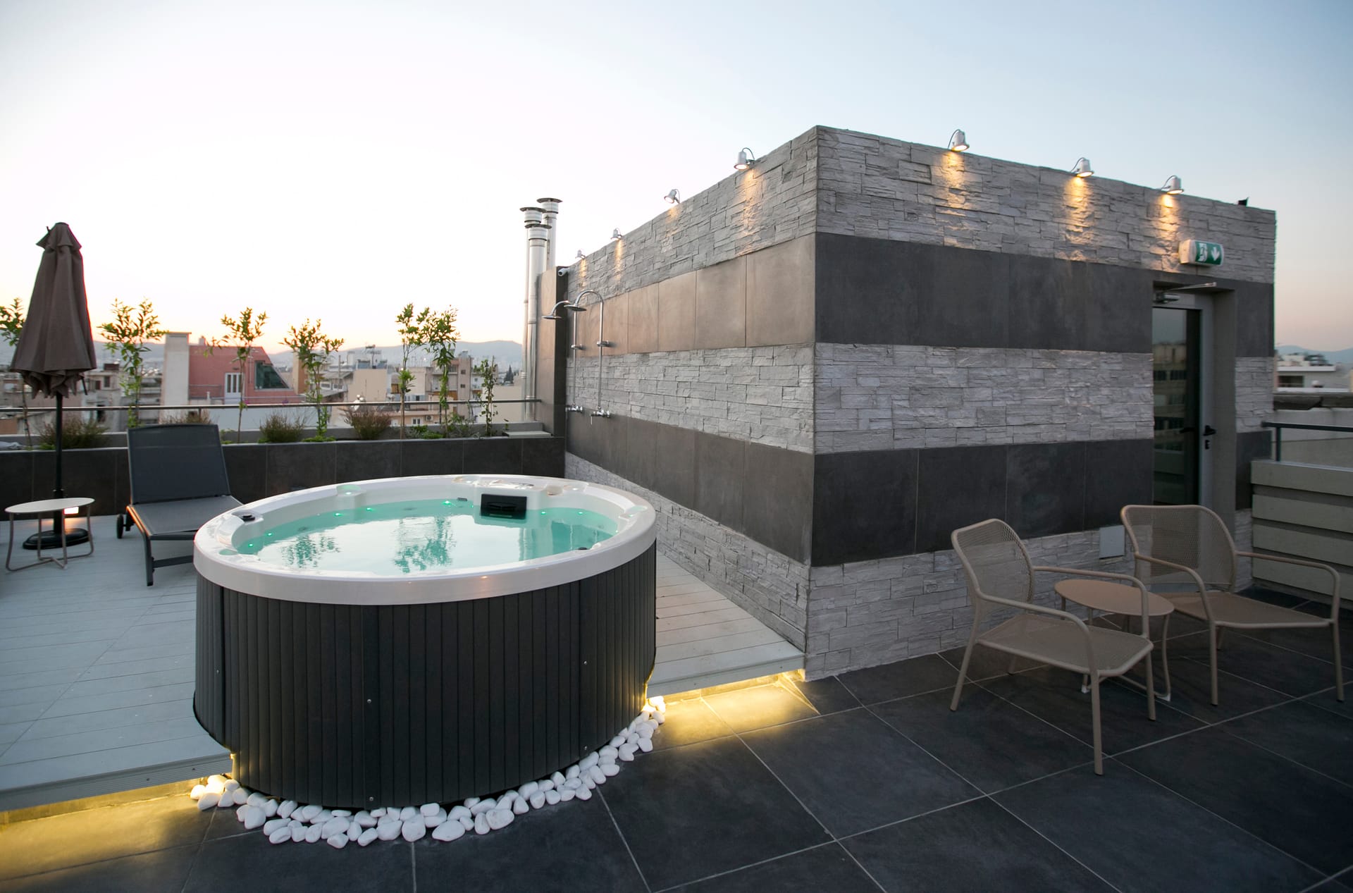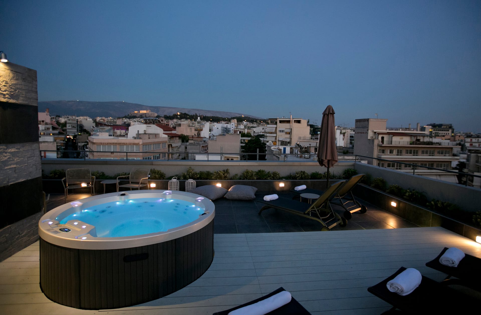 Max: Room facilities:ADSL Internet Connection, Air Conditioning, Bath Amenities, Bathrobes and Slippers, Bathroom with Shower, Closet, Coffee Facilities, Dining Table, Fireplace, Flat Screen TV, Full-length Mirror, Garden View, Hairdryer, House Wine and Fruit Basket upon arrival, Iron & ironing board, Kitchen, Living Room, Lounge, Mini-Bar, Modern Furnishing, Non-smoking rooms available, Outdoor Jacuzzi, Private Balcony, Refrigerator, Safe Deposit Box, Sitting Area, Slippers, Sofa Bed, Soundproof Windows, Wi-Fi Internet Access (free of charge), Writing Desk, Μπουκάλι κρασί