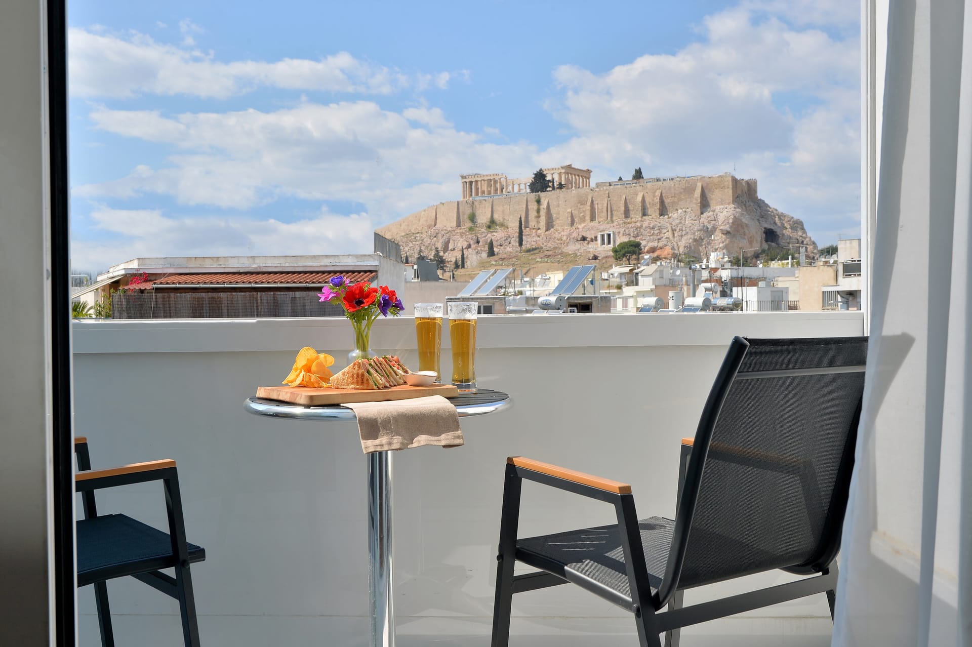 The Premium Acropolis View with Balcony features earthy colors, high quality modern furnishing, carefully selected fabrics and stunning views over Acropolis Hill. They have a king size bed or twin, a work desk and a modern bathroom with a jet shower walk-in cabin. The Premium Acropolis View with Balcony has an approximate surface of 20m2 .