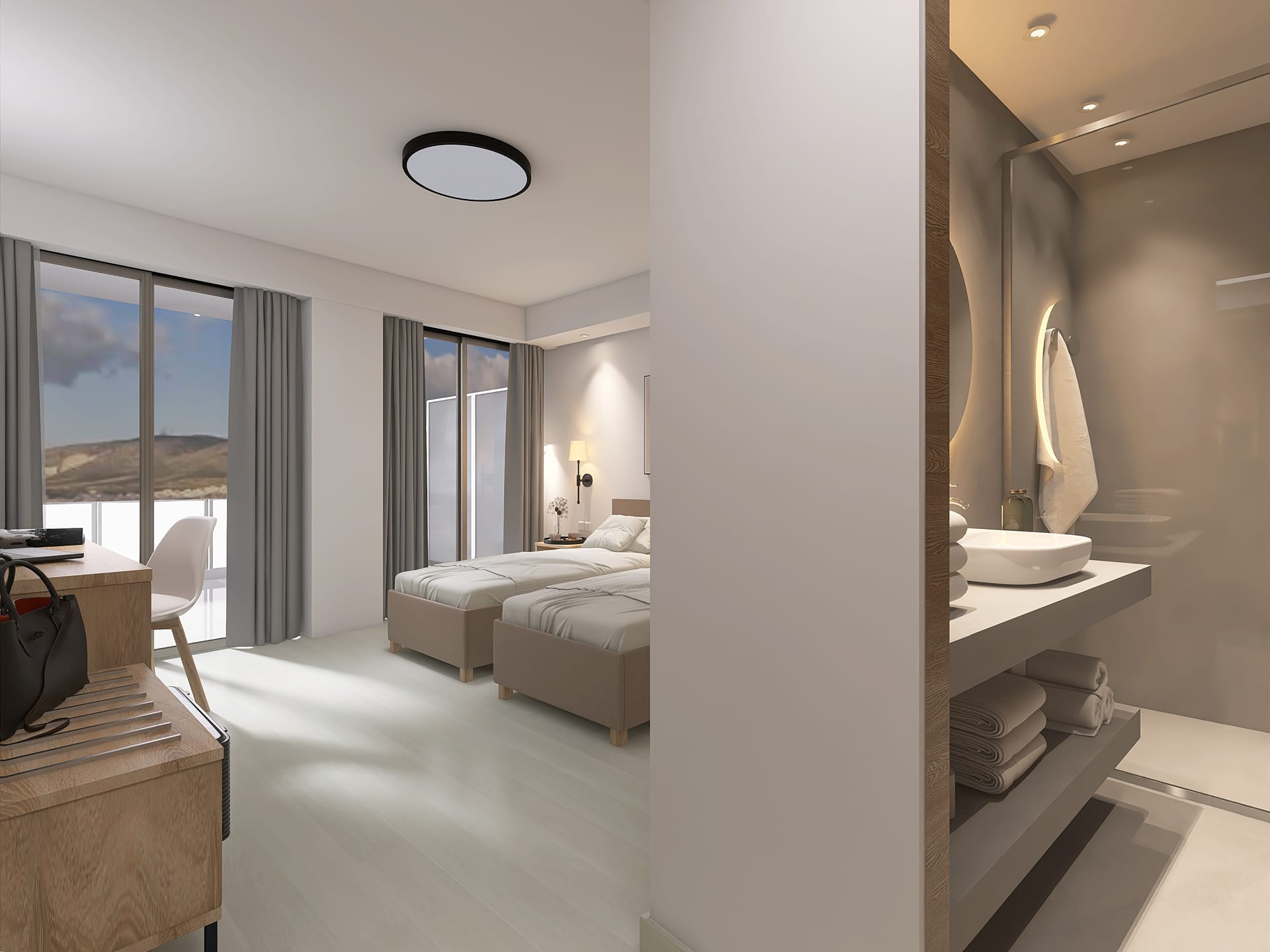 The Lifestyle features earthy colors, high quality modern furnishing and carefully selected fabrics. They have a king size bed or twin, a private working/meeting area and a modern bathroom with a jet shower walk-in cabin. Lifestyle has an approximate surface of 30m2 and can accommodate up to 3 guests with an extra rollaway bed.