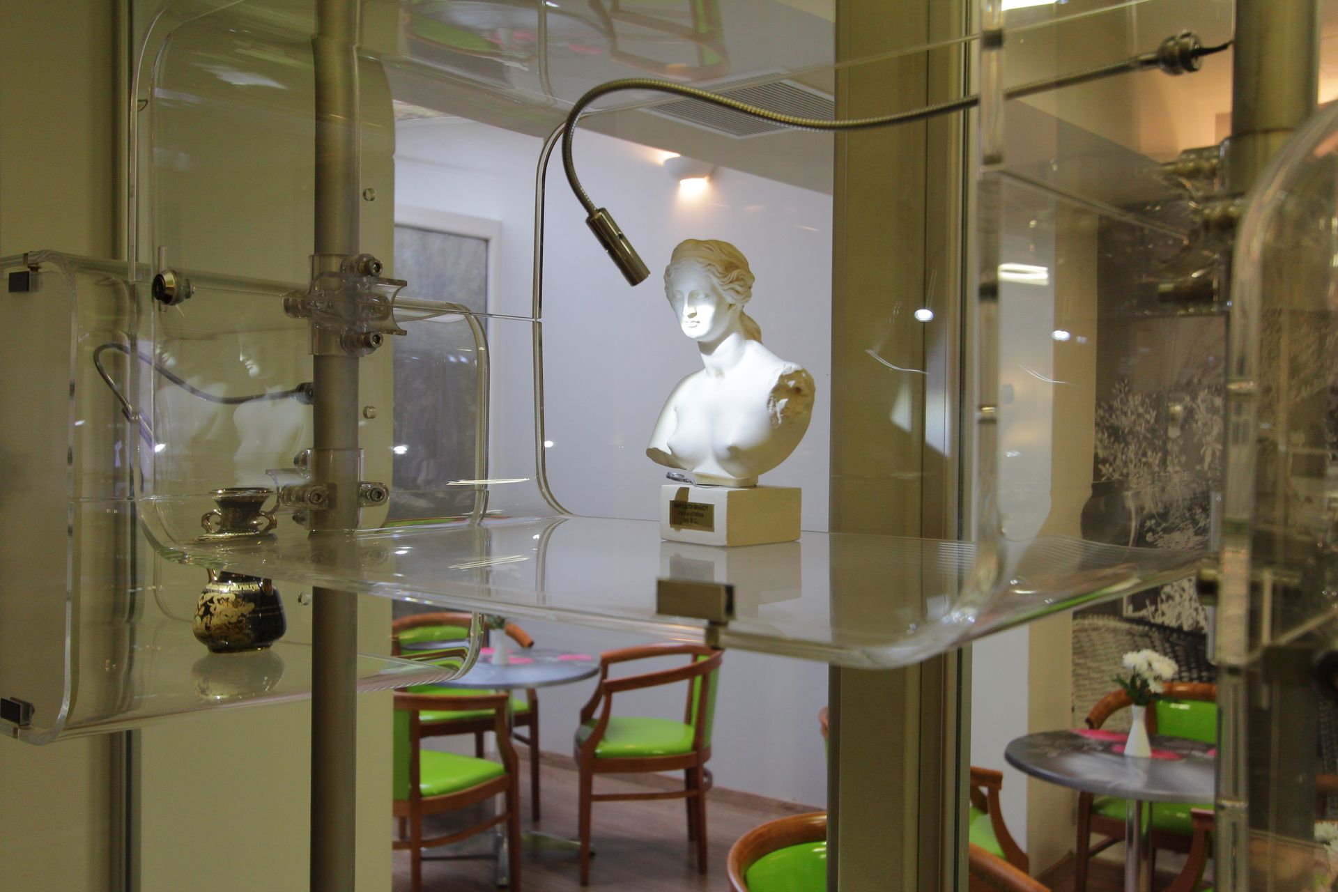 This is an interior room with a window but no balcony.