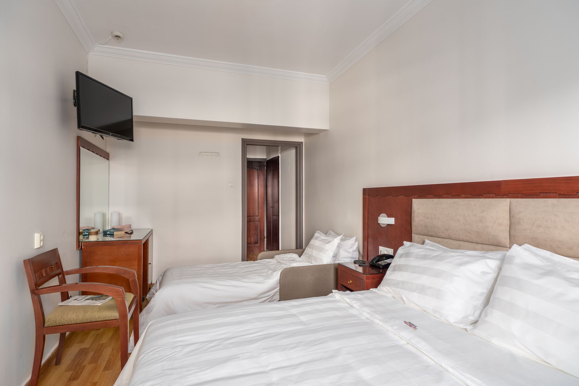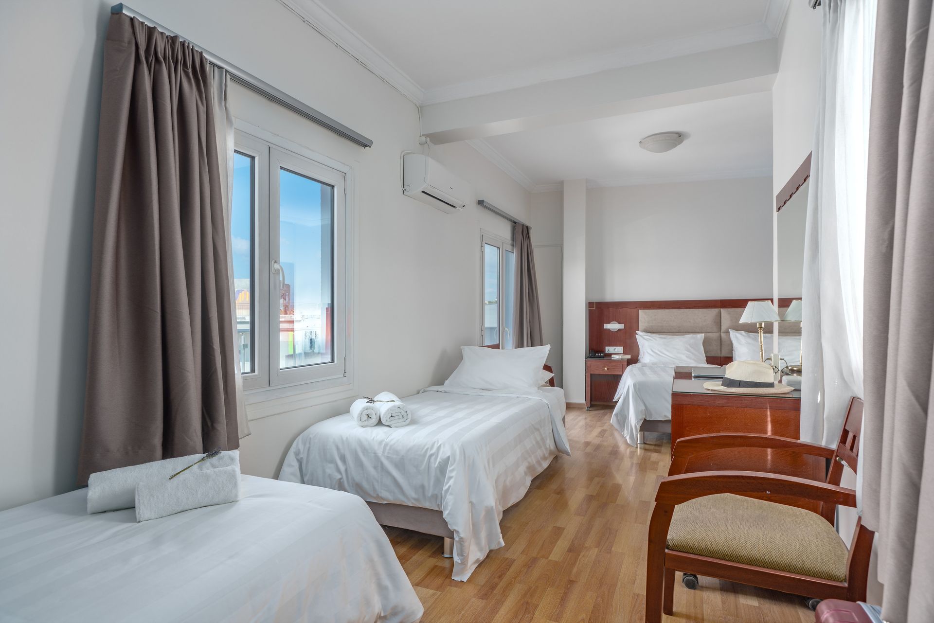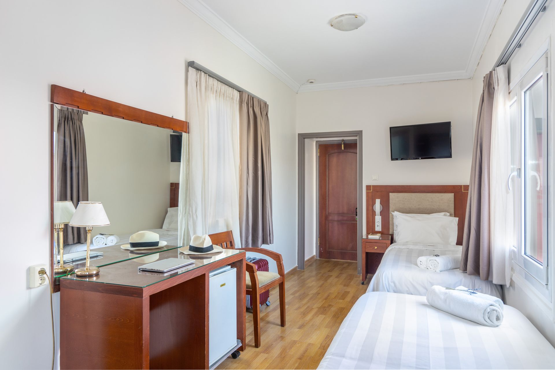 Max: Room facilities:Bathroom with Shower, Cable-Satellite TV, Central Heating, Closet, Direct dial telephone, Electronic Locks, Flat Screen TV, Guest Laundry, Hairdryer, High-speed Internet Access, Individually Controlled Air Condition, Iron & Ironing Board upon request, Non-smoking rooms available, Razor Plug, Room Service (up to midnight), Slippers, Soundproof Windows, Television, Towels and Slippers, Wake-up Call, Welcome Drink, Wi-Fi Internet Access (free of charge), Writing Desk, Bath Amenities, Daily Maid Service, safe deposit box
