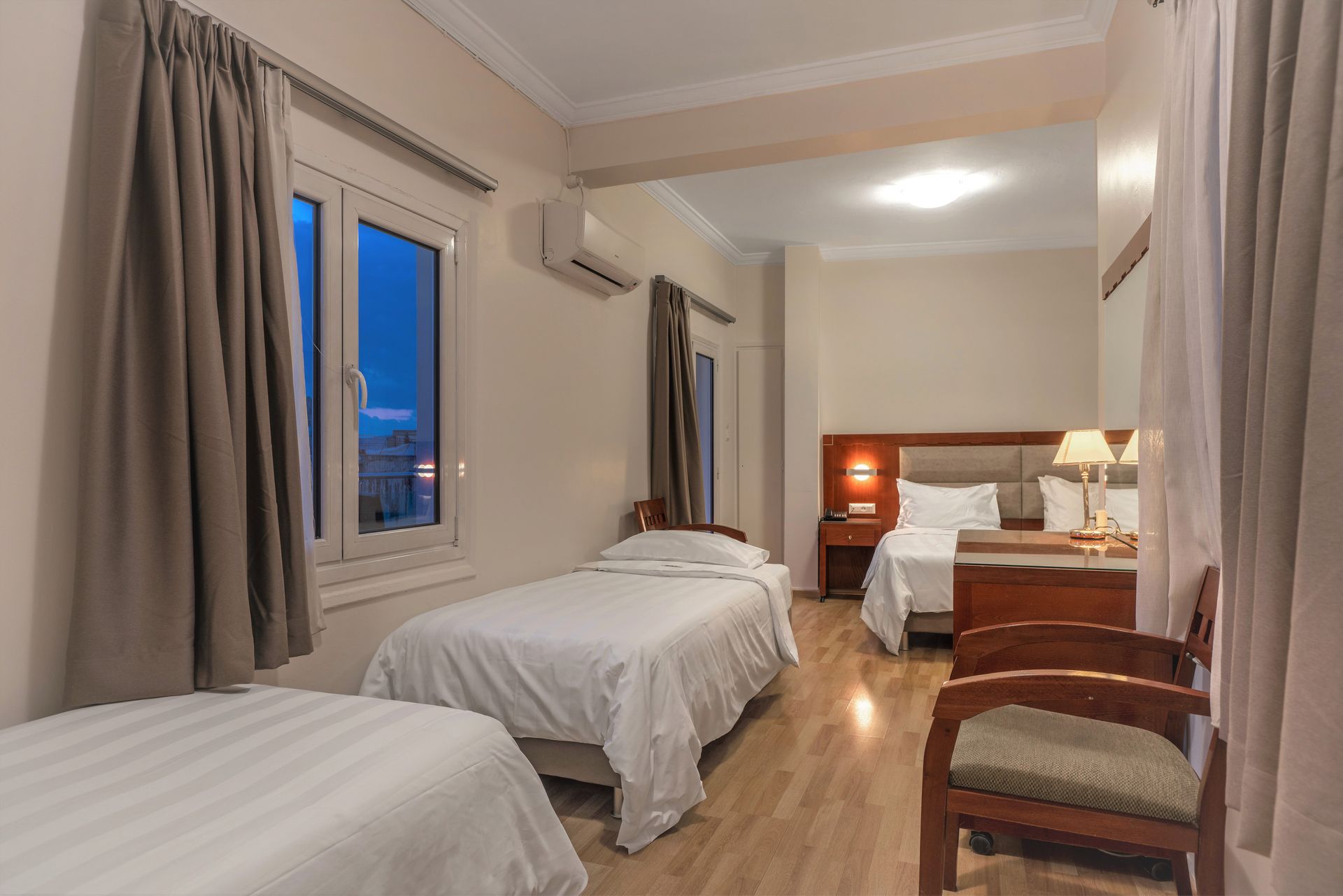 Room facilities:Bathroom with Shower, Cable-Satellite TV, Central Heating, Closet, Direct dial telephone, Electronic Locks, Flat Screen TV, Guest Laundry, Hairdryer, High-speed Internet Access, Individually Controlled Air Condition, Iron & Ironing Board upon request, Movie & Sport Channels, Non-smoking rooms available, Razor Plug, Room Service (up to midnight), Slippers, Soundproof Windows, Television, Towels and Slippers, Wake-up Call, Welcome Drink, Wi-Fi Internet Access (free of charge), Writing Desk, Bath Amenities, Daily Maid Service, safe deposit box