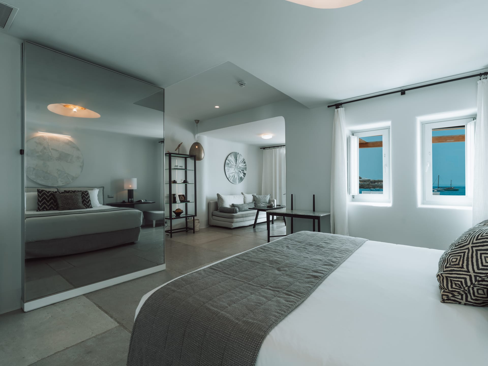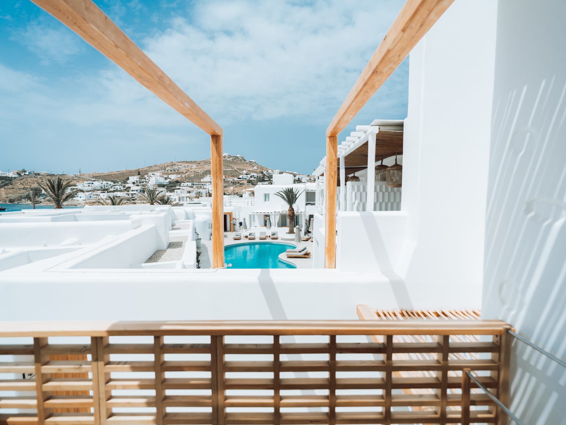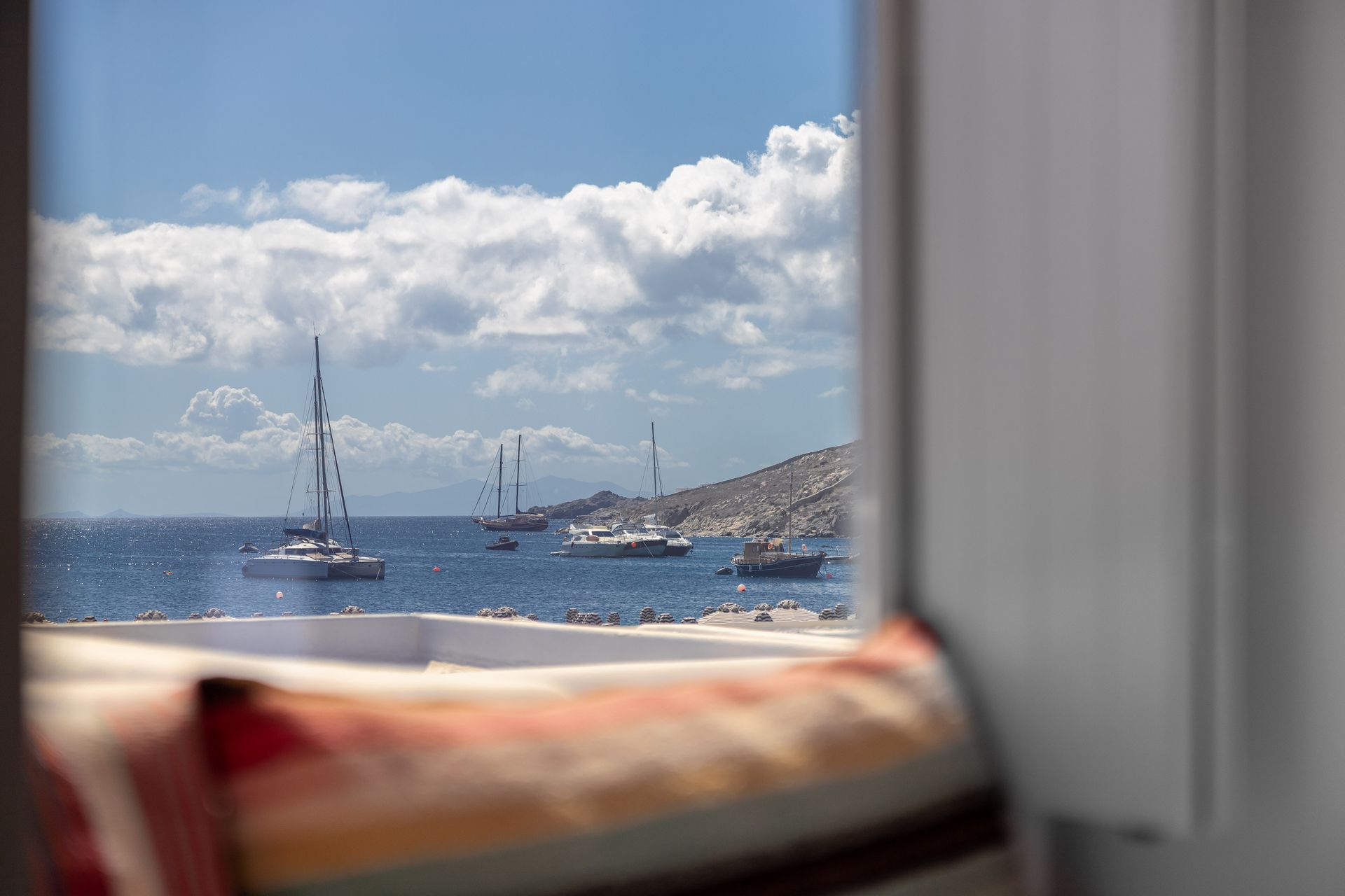 The Superior Seaview Rooms are located on the upper floor and serve comfort and letback Mykonos living, with a panoramic view of one of the best beaches in Mykonos, Ornos Beach, from your private balcony. Open the window to the endless blue of the horizon.