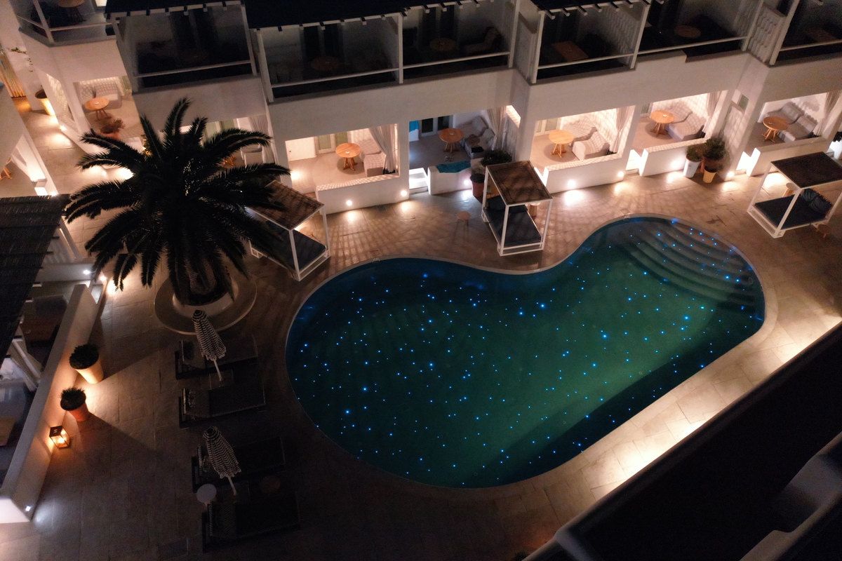 The Deluxe Double Room is a popular spacious ground floor beachside option with comfy outdoor seating areas and an open sky private terrace with hot tub. The Deluxe Rooms with Private Patio feature a generous secluded summer living outdoor space where you find the ultimation relaxation.