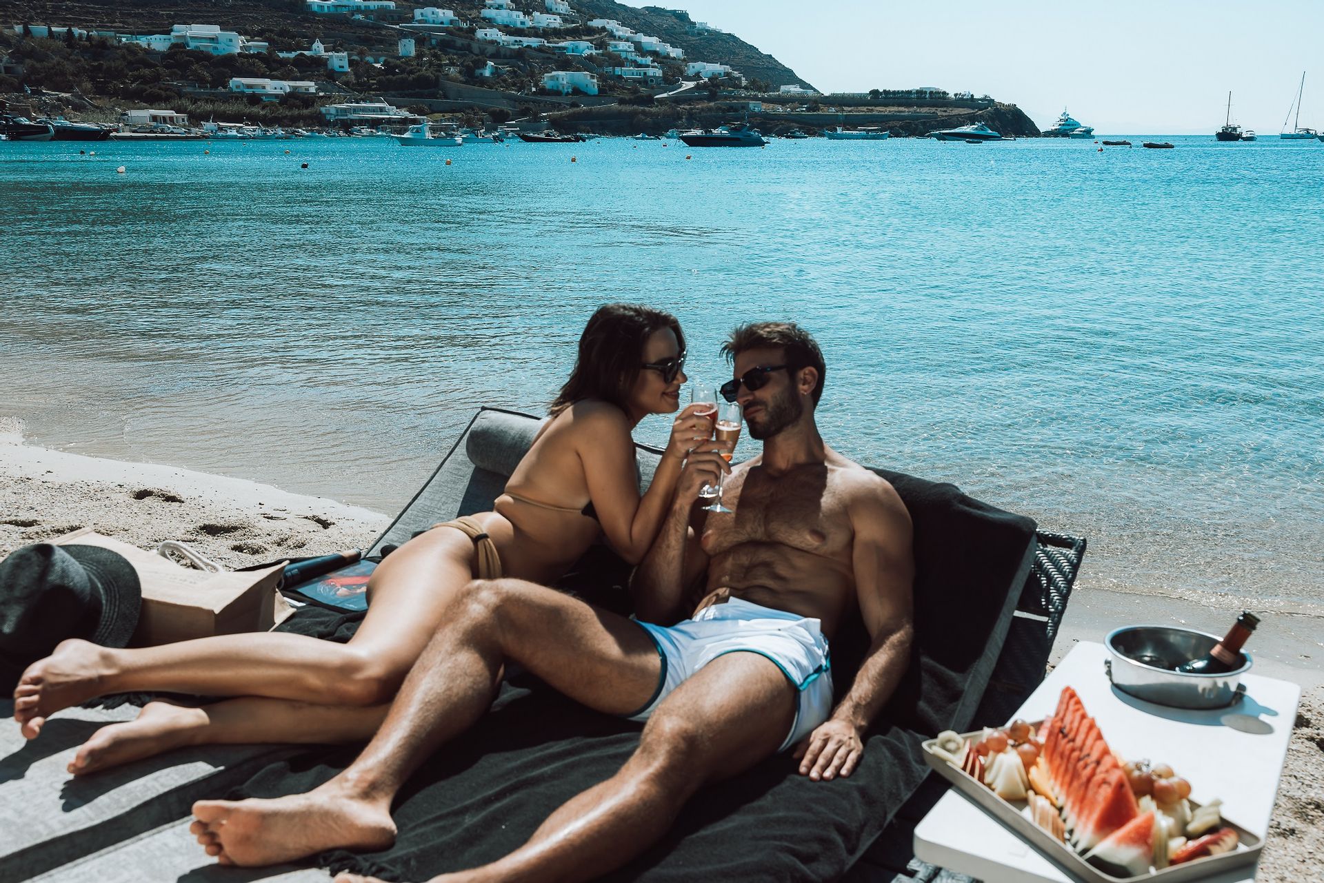 The Honeymoon Suite featuring an outdoor hot tub at the private veranda and unlimited seaview guarantees the couple’s relaxation and intimate moments. Enjoy the spacious suite, relax at your hot tub, enjoy the view of Ornos Beach and enjoy a private dinner at your own veranda, just a few steps away from the beach. Luxury & relaxation in a secluded suite.