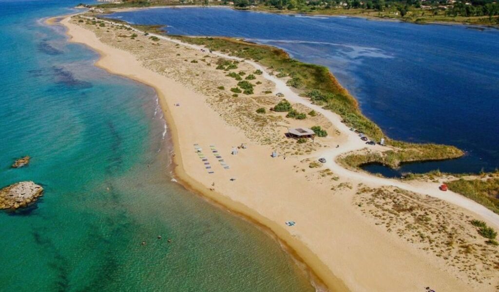 A natural escape with dunes, kite surfing, and the nearby Lake Korission nature reserve.